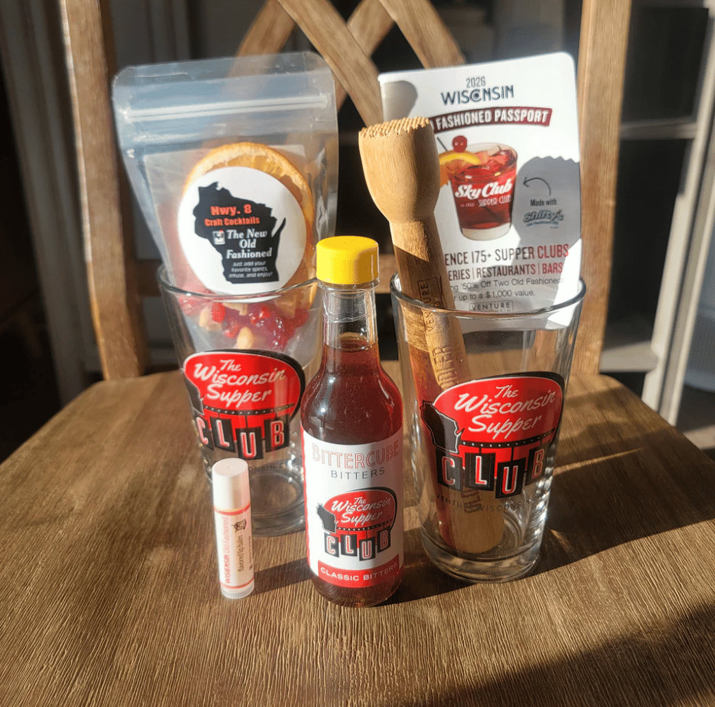 The Ultimate Old Fashioned Bundle from Venture Wisconsin is a homerun for anyone who loves making Old Fahioneds or even exploring Old Fashioned-purveyors (AKA bars). Inside you’ll find: